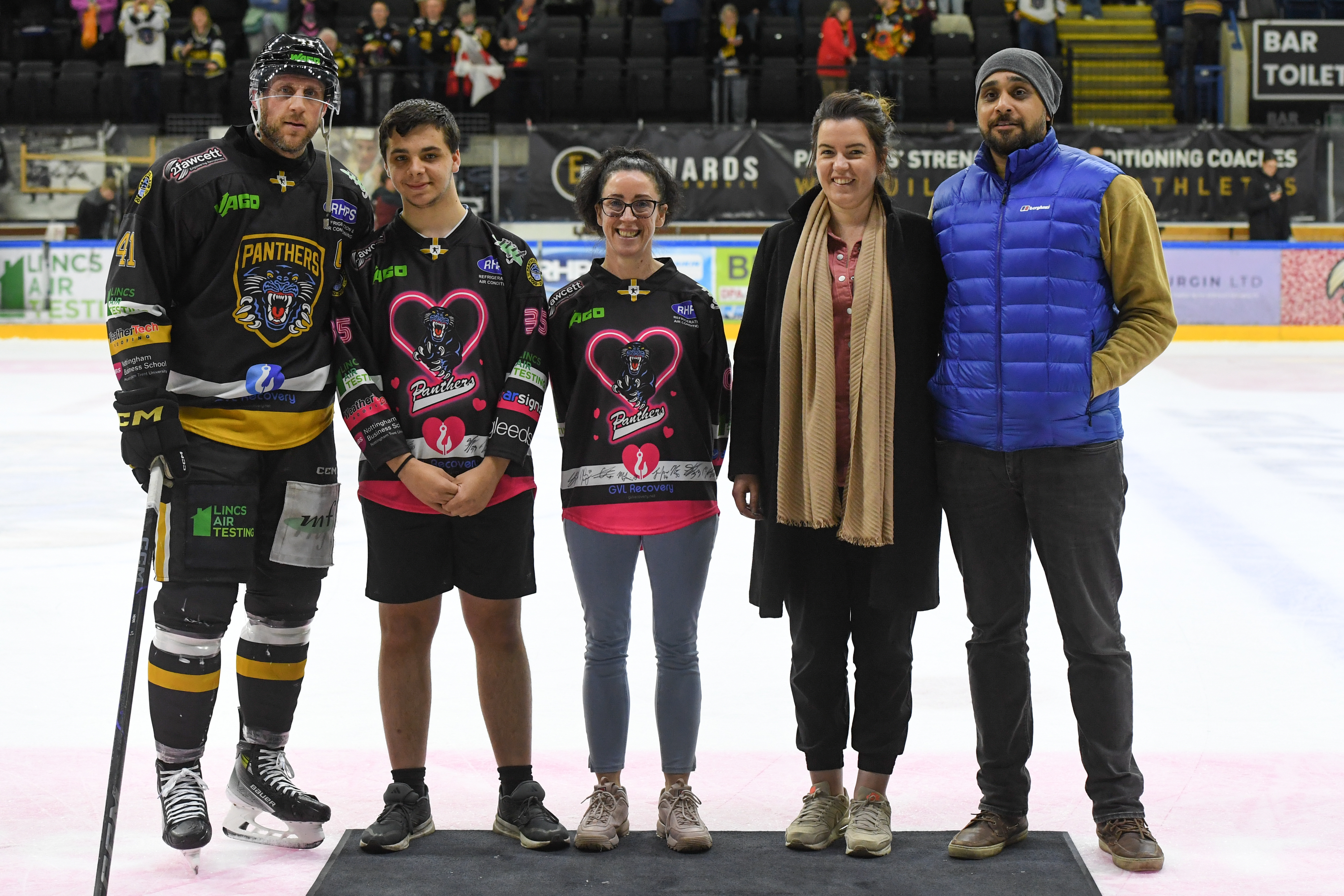 Chuck-a-Puck with Motorpoint: Congratulations to Harry and Laura who landed their puck closest to Paws at centre-ice. They went on the ice post-game and chose to have a photo with Sam Herr as well as a signed puck.